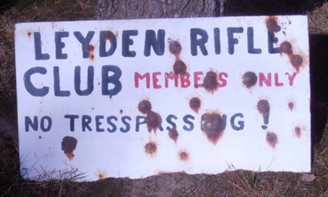 WARNING !ONLY CURRENT LEYDEN RIFLE CLUB MEMBERS ARE ALLOWED TO DISCHARGE FIREARMS ON CLUB PROPERTY;